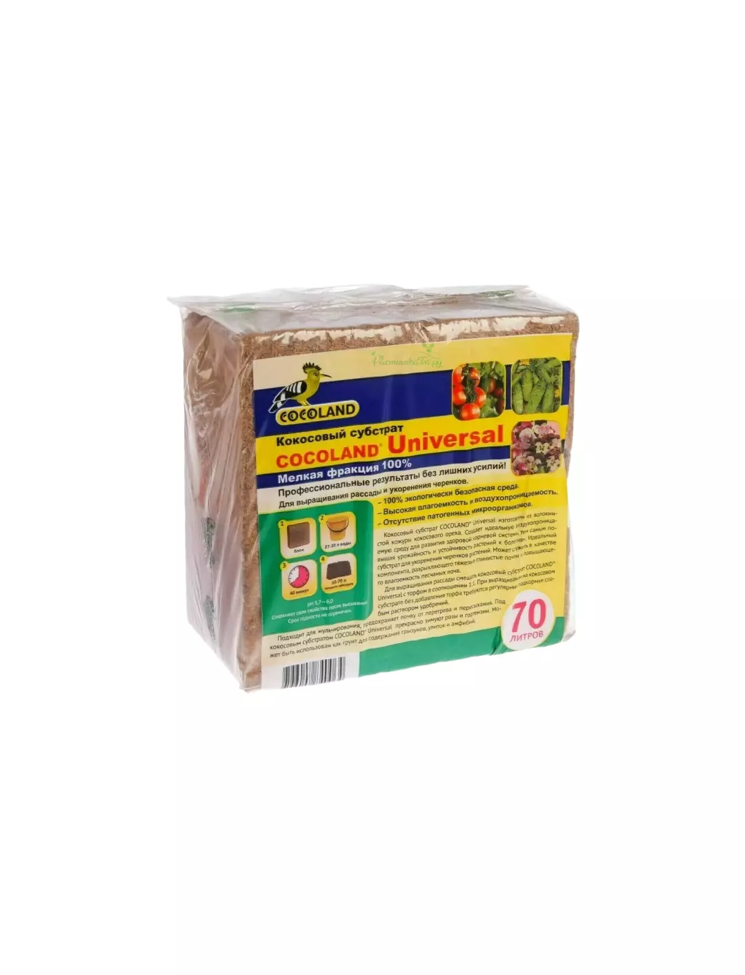 Кокосовый субстрат Cocoland Universal — отличный выбор для выращивания рассады. И не только. У этого субстрата несколько сфер применения. Кокосовый субстрат имеет небольшой вес (что очень важно, например, при использовании в подвесных кашпо), прост в обращении и имеет нейтральный pH. Его можно использовать для выращивания растений в контейнерах, гидропонных системах или в традиционной садовой почве. Также субстрат хорошо подходит для проращивания семян и укоренения черенков.