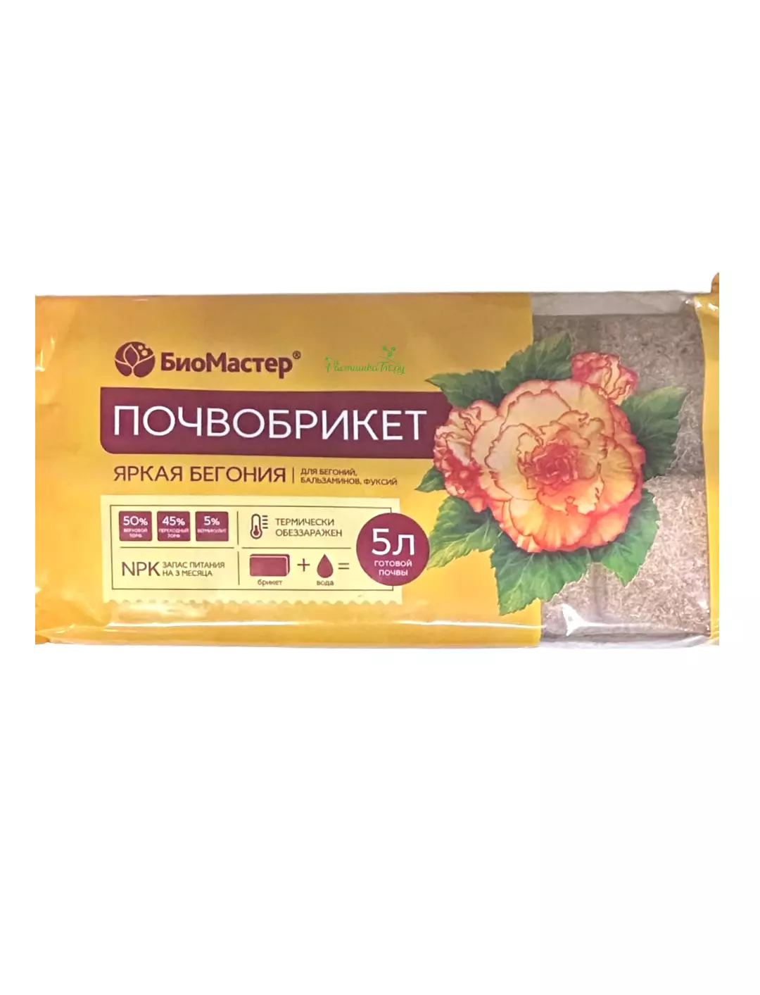 БиоМастер Почвобрикет Яркая бегония 5 л