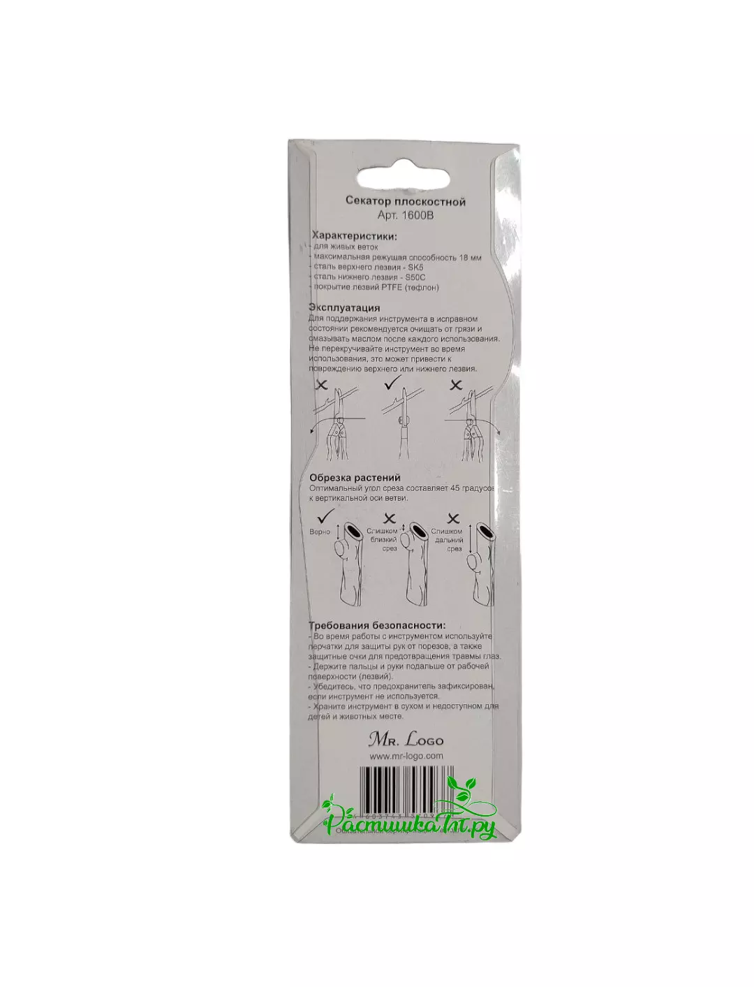 Секатор Mr. Logo 1600B предназначен для обрезки свежих веток. Он имеет плоскостное лезвие, которое позволяет делать ровный срез.