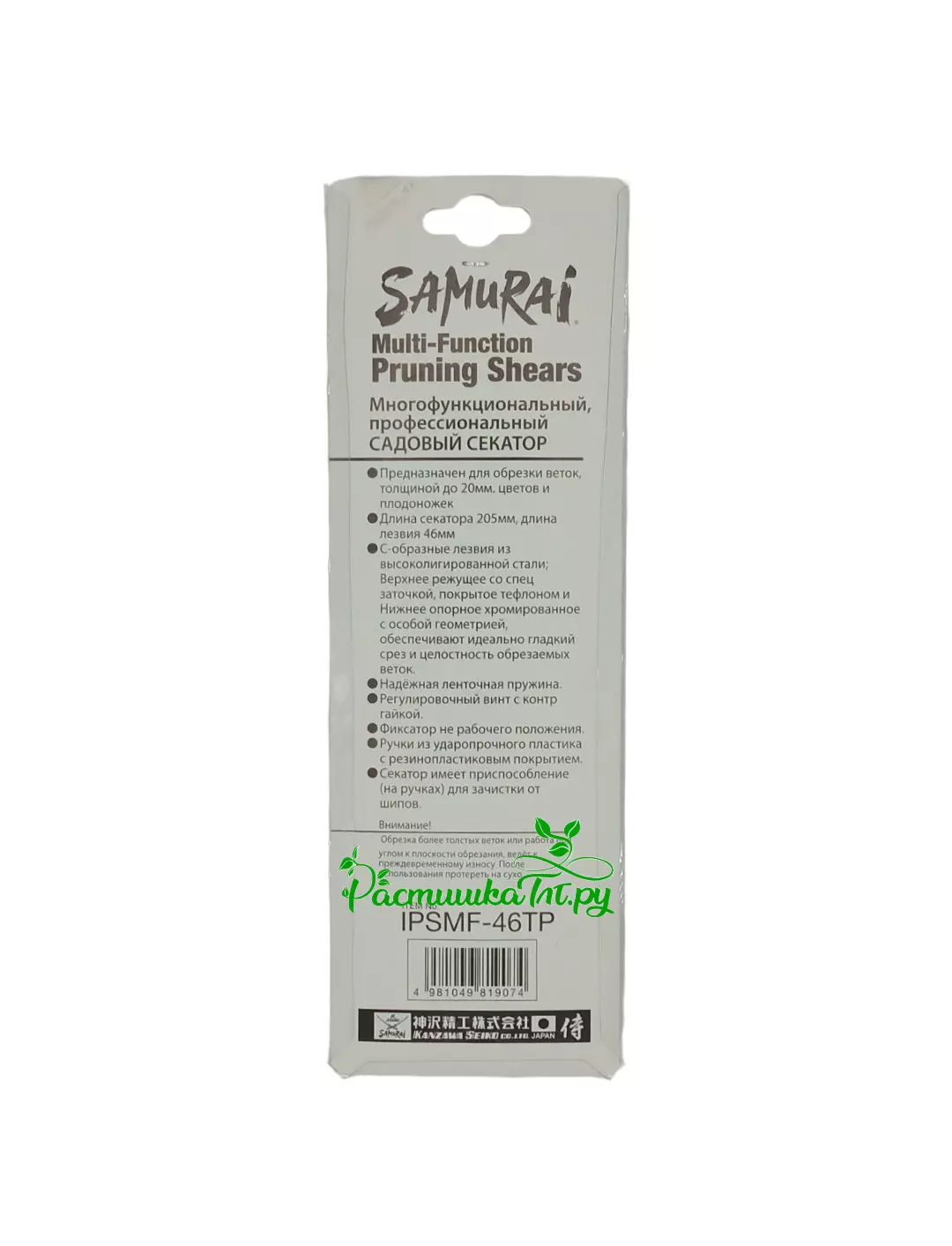 Секатор Samurai IPSMF-46TP - это профессиональный садовый инструмент, предназначенный для обрезки веток и кустарников. Он оснащен высококачественными материалами, такими как сталь SK5, которая обеспечивает высокую прочность и долговечность инструмента.