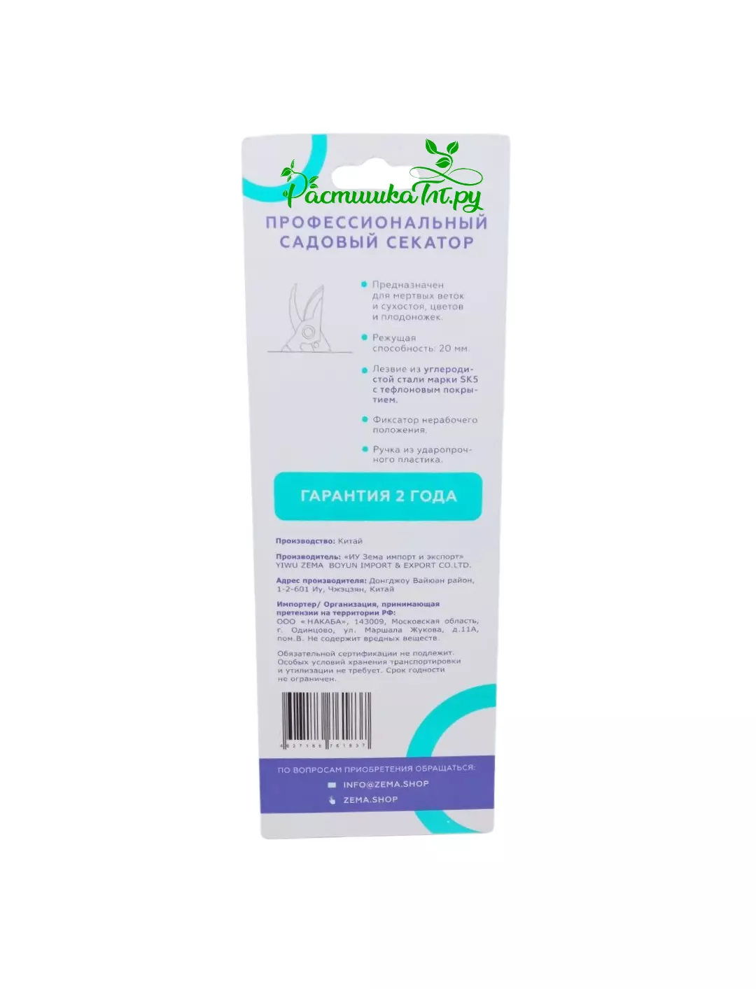 Секатор ZEMA 2004 Профессиональный, для мертвых веток и сухостоя, цветов и плодоножек 20 мм