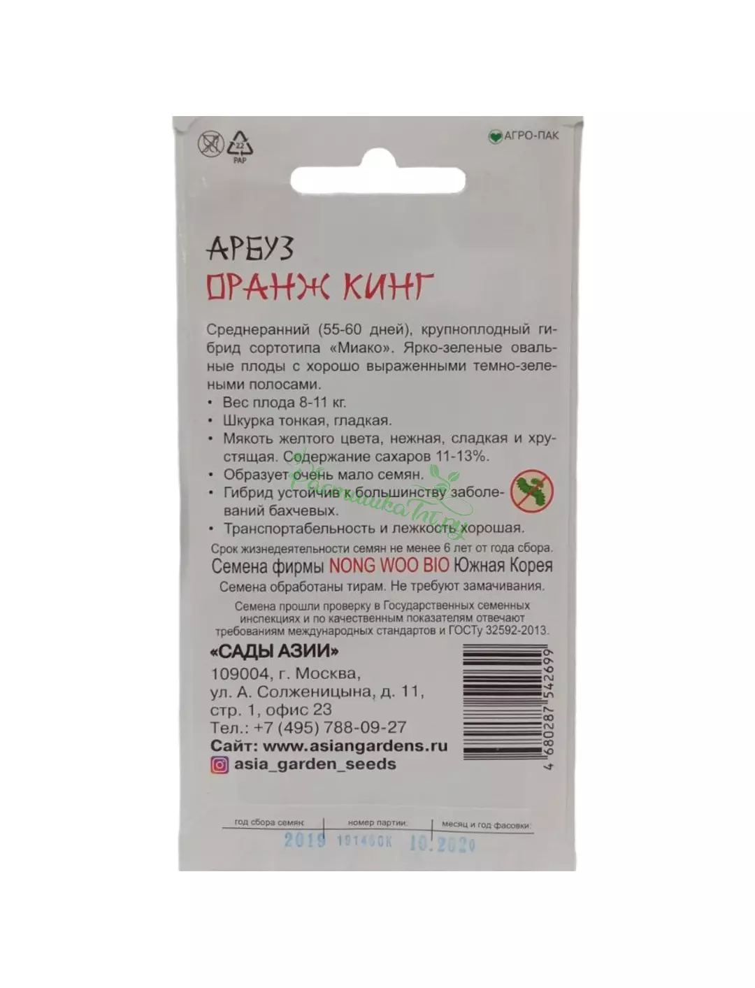 Гибрид нового поколения — Миако. Среднеранний сорт крупноплодного сортотипа “Миако”. Овальные плоды ярко-зелёного цвета с хорошо выраженными тёмно- зелёными полосами, весом от 8 до 11 кг. Кожица нежная, тонкая, гладкая, жёлтого цвета. Мякоть сладкая, сочная, хрустящая с содержанием сахара от 11% до 13%. Низкая семенность, высокая устойчивость к болезням бахчевых и хорошая транспортабельность.