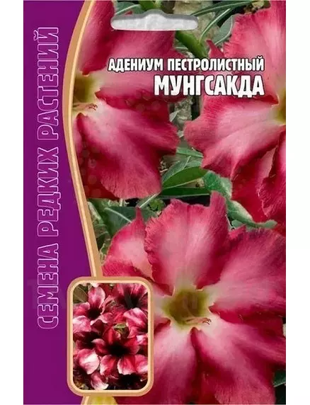 Этот вид имеет восхитительные красно-черные цветки, и декоративную листву. Адениум (Desert Rose)относится к долгожителям. У нас выращивается как комнатное. В домашних условиях вырастает до 0,5м. Фантастический по красоте цветок. Цветет Адениум в основном с весны по осень. При соблюдении оптимальных условий выращивания может цвести почти круглогодично. Существуют экземпляры, возраст которых насчитывается более 75лет. По утверждению разводчиков, эти растения способны жить до 200лет, переходя из поколения к поколению.