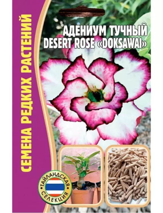 Получить такой здоровый экземпляр можно только из семян. Перед посадкой не будет лишним провести дезинфекцию семян адениума. В среднем время всхода растения составляет 21день. Этот процесс возможно ускорить с помощью циркона. Следует растворить его в теплой воде и поместить в неё семена на 2-4часа. Грунт для посадки: Для этого необходимо смешать вермикулит и торф (2:1), добавив древесный уголь (около 10%). Посев происходит на увлажненной почве. Семечко следует положить на землю, но не углублять его. Далее требуется закрыть пищевой пленкой и убрать в теплое место (24-28градусов).