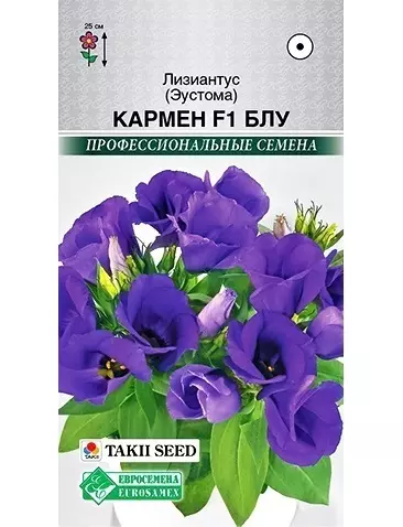 Эустома Кармен - специальная серия от японской компании Takii Seed для выращивания в горшках. Компактные, низкорослые и сильно ветвящиеся растения имеют крупный цветок. Цветки махровые, с несколькими рядами лепестков. Очень эффектное растение, как для сада, так и для дома, широко использующееся также для украшения различных мероприятий.