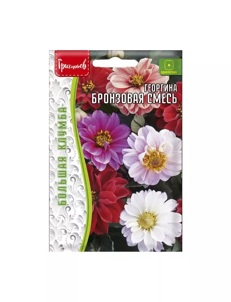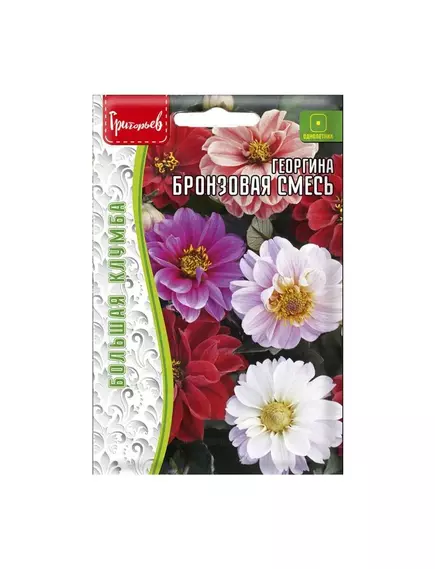 Георгина Бронзовая. Эта эффектная, красиво цветущая смесь будет радовать Вас не только своими крупными махровыми и полумахровыми цветками, но также и удивит Вас своей необычно окрашенной красновато-бронзовой листвой. Соцветия шаровидной формы, до 6-9 см в диаметре, разнообразных ярких окрасок. Краевые лепестки многочисленные, однотипные, короткоовальные, на концах свернуты в трубку, расположены концентрическими кругами. Они занимают почти все ложе соцветия и прикрывают немногочисленные трубчатые цветки. Применяется как в свободных композициях в декоративных контейнерах и вазонах, так и в групповых посадках - на переднем плане цветника, миксбордера. Великолепно смотрится в срезке.