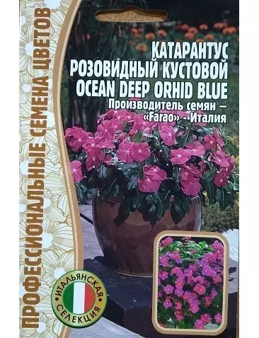 РОСКОШНАЯ СЕРИЯ С ТРАДИЦИОННЫМИ И НЕОБЫЧНЫМИ ОКРАСКАМИ ЦВЕТКА. Растение формирует плотный куст, высотой 25см., с короткими междоузлиями и красивыми темно-зелеными блестящими ланцетовидными листьями, на фоне которых особенно эффектно сияют цветки, диаметром 5-7см., необычных окрасок. Расцветка катарантуса Океан Дип орхид - от итальянских селекционеров - пленяет насыщенной фуксиево-фиолетовой окраской. Посев на рассаду проводят в марте-апреле. В открытый грунт высаживают в конце мая - начале июня. Катарантус предпочитает солнечные, плодородные, хорошо увлажненные места. Устойчив к засухе. На зиму растение можно занести в дом или зимний сад и выращивать как комнатное многолетнее. Используется для посадки на клумбы, в контейнеры и бордюры, а также как комнатное горшечное.