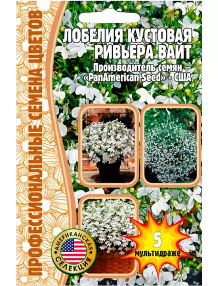 Лобелия Ривьера Вайт кустовая F1 5 шт РЕДКИЕ СЕМЕНА