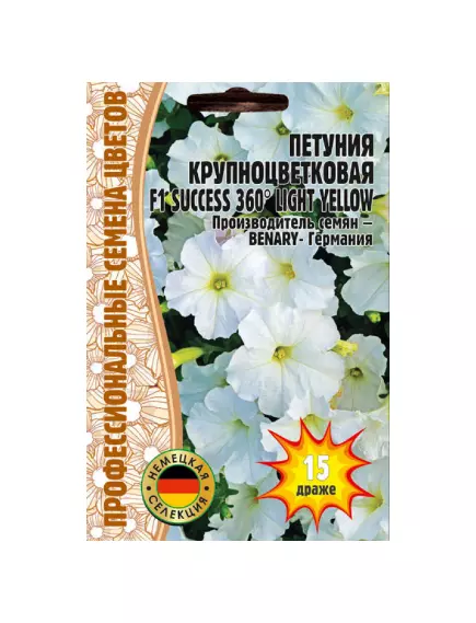 Новая раннецветущая крупноцветковая петуния, от знаменитой немецкой компании BENARY. Порадует вас эффектными компактными кустиками, высотой 20-35 см, обильно усыпанными крупными восхитительными цветками, с волнистым краем, светящейся бело-желтой окраски, диаметром 8-10 см. Растения выделяются очень обильным цветением, с компактным габитусом, хорошо ветвятся и быстро заполняют пространство вокруг себя, образуя крупные шапки цветов. Зацветают рано и до конца сезона радуют беспрерывным цветением. Растения прекрасно смотрятся с 360° обзора!