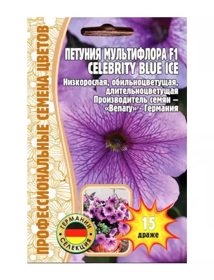 Прекрасный низкорослый обильноцветущий гибрид знаменитой немецкой фирмы ВЕNARY. Высота взрослых растений 15-25 см. Многоцветковая длительноцветущая петуния Селебрити, характеризующаяся выровненным габитусом, обилием ярких крупных цветов, диаметром 7-8 см, и устойчивостью к неблагоприятным погодным условиям. Петунии серии Селебрити отличаются высокой устойчивостью к дождю, ветру, к засушливой жаркой погоде. Цветы не выгорают, не теряют декоративности, быстро восстанавливаются после повреждений устойчива и способна к быстрой регенерации в неблагооприятных погодных условиях,