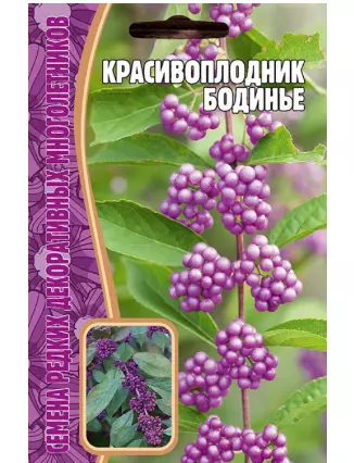 Родина этого растения — Китай. Высота этих растений разная от 1,5 до 3,5 метров. Как понятно из названия у этого кустарника красивые плоды. Пурпурно-фиолетовые ягоды красивоплодника, которые он не сбрасывает на протяжении почти всей зимы, способны украсить ваш ландшафт, а ярко-зелёная листва летом и красная и золотистая осенью и фиолетовые, розовые или белые цветки в пазухах листвы создают настроение и необходимый декоративный эффект в остальные времена года. Также красивоплодники успешно выра¬щивают как кадочные растения, занося на зиму в прохладное помещение.
