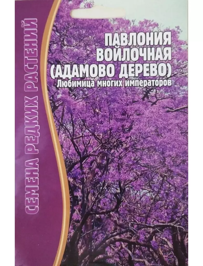 Павловния войлочная, или Адамово дерево войлочное, Императорское дерево (Paulowniatomentosa) – листопадное широколиственное дерево до 25 м высотой, с раскидистой ажурной кроной. Живёт более 100 лет. Прирост составляет до 1,5 м в год, в 10 лет павловния может достигать 15 м, поэтому считается одним из самых быстрорастущих деревьев в мире. Необыкновенно крупные листья до 70 см длиной и шириной придают дереву потрясающий вид с середины мая до первых заморозков в октябре. Кроме декоративной листвы павловния каждую весну удивляет своим нарядным цветением.