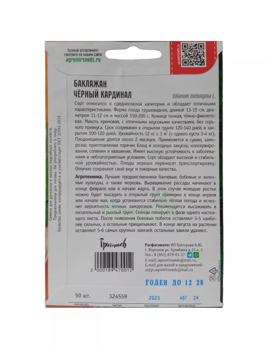 Сорт относится к среднеспелой категории и обладает отличными характеристиками: форма - грушевидная; длина - 13- 15 см; диаметр - 11-12 см; масса 150-200 г.; кожица тонкая, темно-фиолетовая; мякоть - кремовая, с отличными вкусовыми характеристиками, без горького привкуса; Сроки созревания: 120-140 дней в открытом грунте, 100-120 дней в теплице. Урожайность: 12 кг с 1 кв. м, с одного куста-3-4 кг. Длительность плодоношения: 2 месяца. Применение: сушка, заморозка, приготовление горячих блюд и холодных закусок, консервирование, соление и квашение. Устойчивость к заболеваниям: высокая. Устойчивость к неблагоприятным условиям: высокая. Плюсы: высокая и стабильная урожайность; отличная товарность плодов; простая агротехника; высокий иммунитет и жизнестойкость; универсальное использование в кулинарии; годится для выращивания любым способом - в открытом или закрытом грунте; дружное созревание плодов; плоды хорошо переносят транспортировку: баклажаны во время хранения сохраняют свой вкус товарные качества. Выращивание через рассаду.