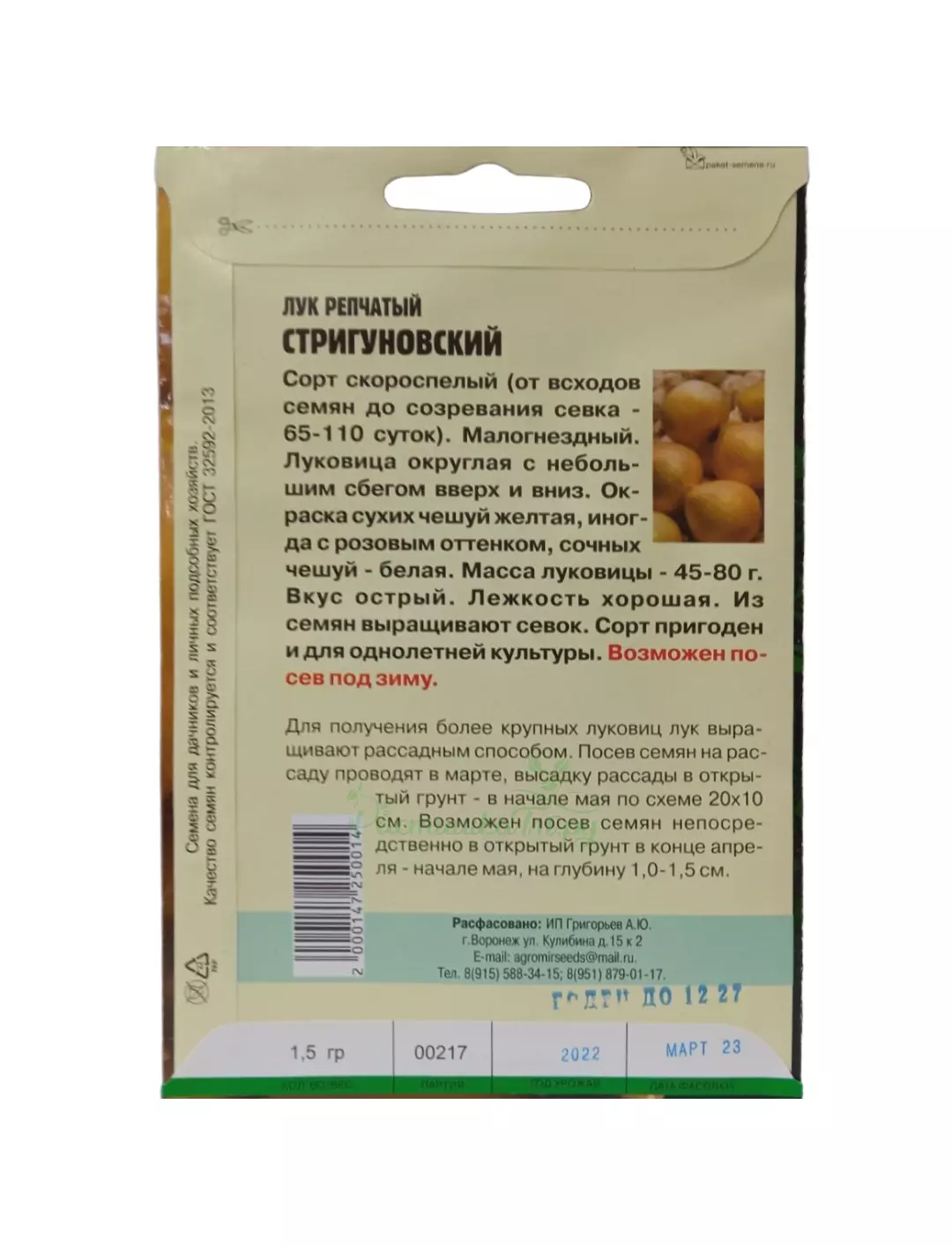 Для получения более крупных луковиц лук выращивают рассадным способом. Посев семян на рассаду проводят в марте, высадку рассады в открытый грунт - в начале мая по схеме 20x10 см. Возможен посев семян непосредственно в открытый грунт в конце апреля - начале мая, на глубину 1,0-1,5 см.
