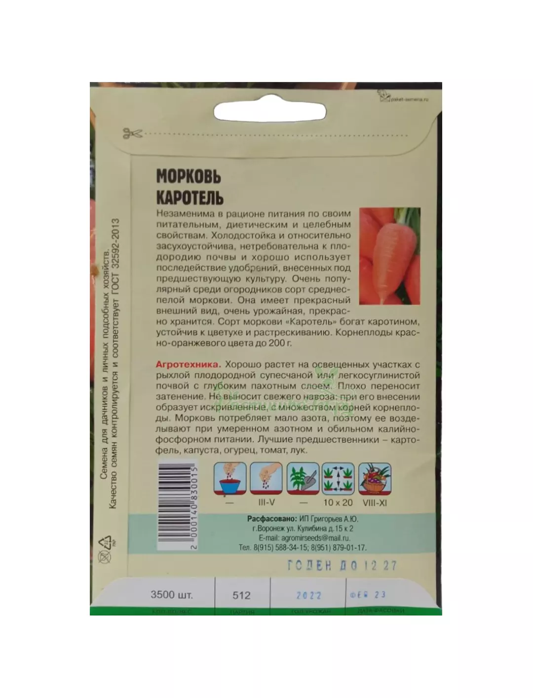 Незаменима в рационе питания по своим питательным, диетическим и целебным свойствам. Холодостойка и относительно засухоустойчива, нетребовательна к плодородию почвы и хорошо использует последействие удобрений, внесенных под предшествующую культуру. Очень популярный среди огородников сорт среднеспелой моркови.
