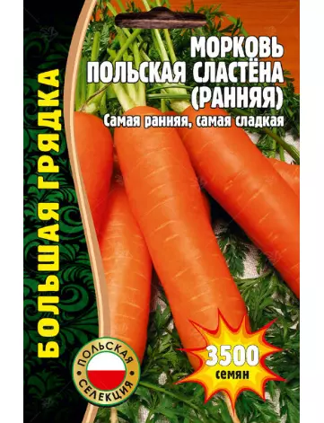 Морковь Польская сластёна. обладает отличными сортовыми характеристиками, нетребовательна в уходе и обладает большой урожайностью. Вырастить ее на своем участке сможет даже не очень опытный огородник.
