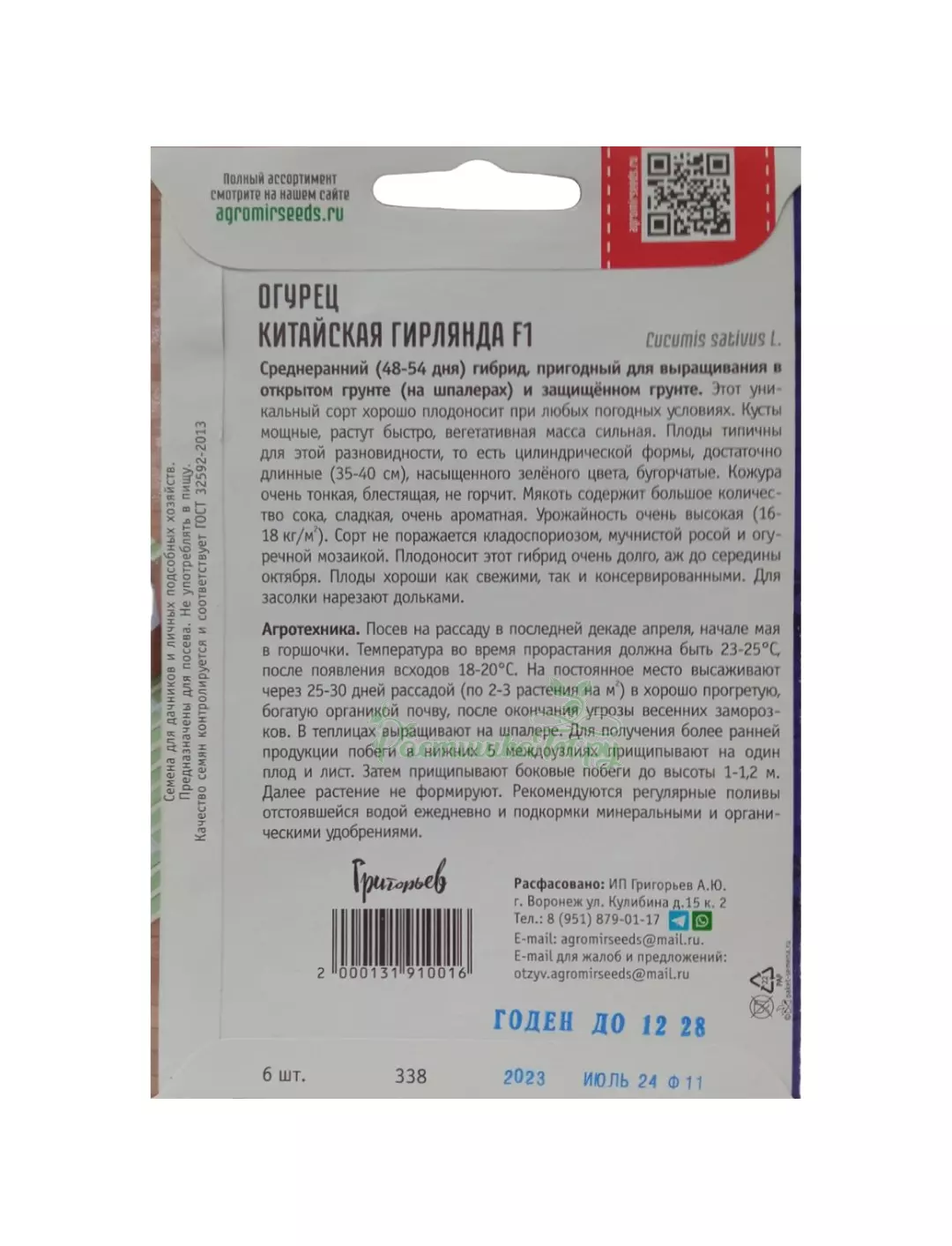 Среднеранний (48-54 дня) гибрид пригодный для выращивания в открытом грунте (на шпалерах) и защищенном грунте. Этот уникальный сорт хорошо плодоносит при любых погодных условиях. Кусты мощные, растут быстро, вегетативная масса сильная. Плоды типичны для этой разновидности, то есть цилиндрической формы, достаточно длинные (35 — 40 см), насыщенного зеленого цвета, бугорчатые. Кожура очень тонкая, блестящая, не горчит. Мякоть содержит большое количество сока, сладкая, очень ароматная. Урожайность очень высокая, 16 — 18 кг с квадратного метра грядки. Сорт не поражается ладоспориозом, мучнистой росой и огуречной мозаикой. Плодоносит этот гибрид очень долго, аж до середины октября. Плоды хороши как свежими, так и консервированными. Для засолки нарезают дольками.