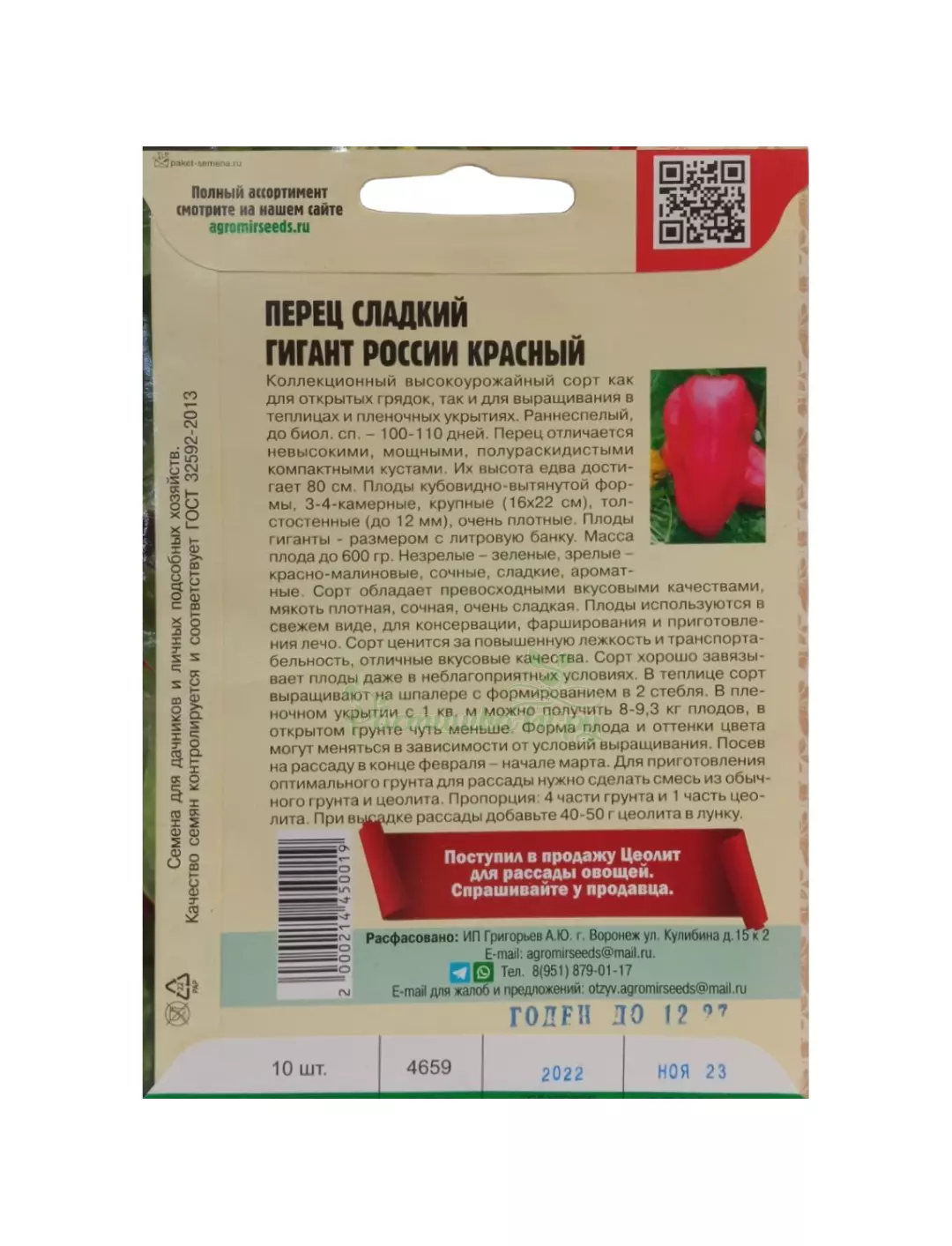 Основная информацияСладкий перец Гигант России красный – Раннеспелый. Высотой до 0,8 м. Плоды массой 250-500 г кубовидно-вытянутой формы, толщина стенки до 1.0 см. Окраска в технической спелости тёмно-зелёная, в биологической – насыщенно-красная. Используют его в кулинарии в салатах, запекают в духовке, применяют при приготовлении соусов и лечо, используют при приготовлении первых блюд.