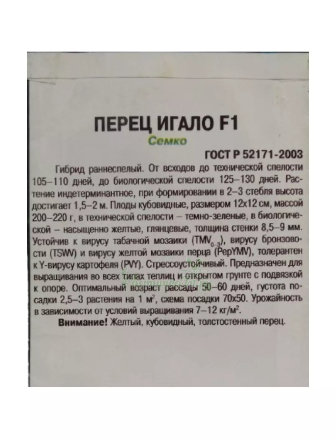 Устойчив к вирусу табачной мозаики (TMV (0-3), вирусу бронзовости (TSW) и вирусу желтой мозаики перца (PepYMV), толерантен Y-вирусу картофеля (PV). Стрессоустойчивый. Предназначен для выращивания во всех типах теплиц и открытом грунте с подвязкой к опоре.