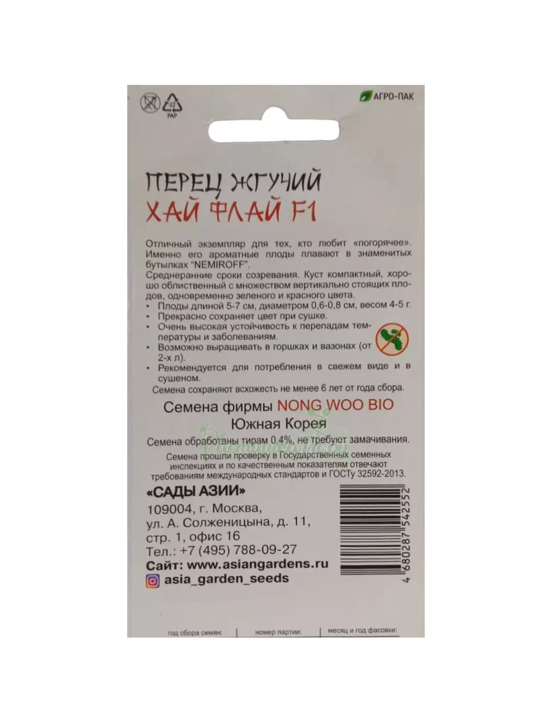 Плоды длиной 5-7 см, диаметром 0,6-0,8 см, весом 4-5 г. Прекрасно сохраняет цвет при сушке. Очень высокая устойчивость к перепадам температуры и заболеваниям. Возможно выращивать в горшках и вазонах (от 2-х л).Рекомендуется для потребления в свежем виде и в сушеном.