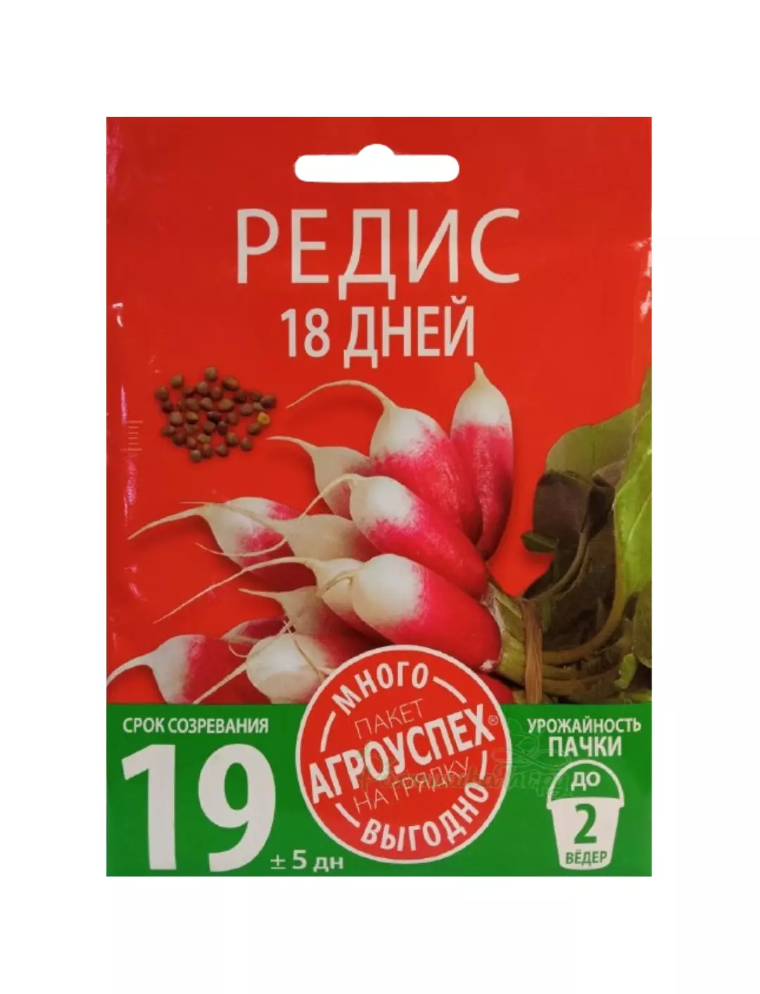 Суперраннеспелый сорт, созревает через 18-21 день после посева. Корнеплоды цилиндрические длиной 5-6 см, красные с белым кончиком, массой 17-20 г. Мякоть белая, сочная, вкусная, нежная, неострая. Устойчив к цветушности. Отличается дружной отдачей урожая. Предназначен для выращивания в открытом грунте для получения очень ранней продукции. В качестве ранней зелени в салаты можно употреблять листья редиса.