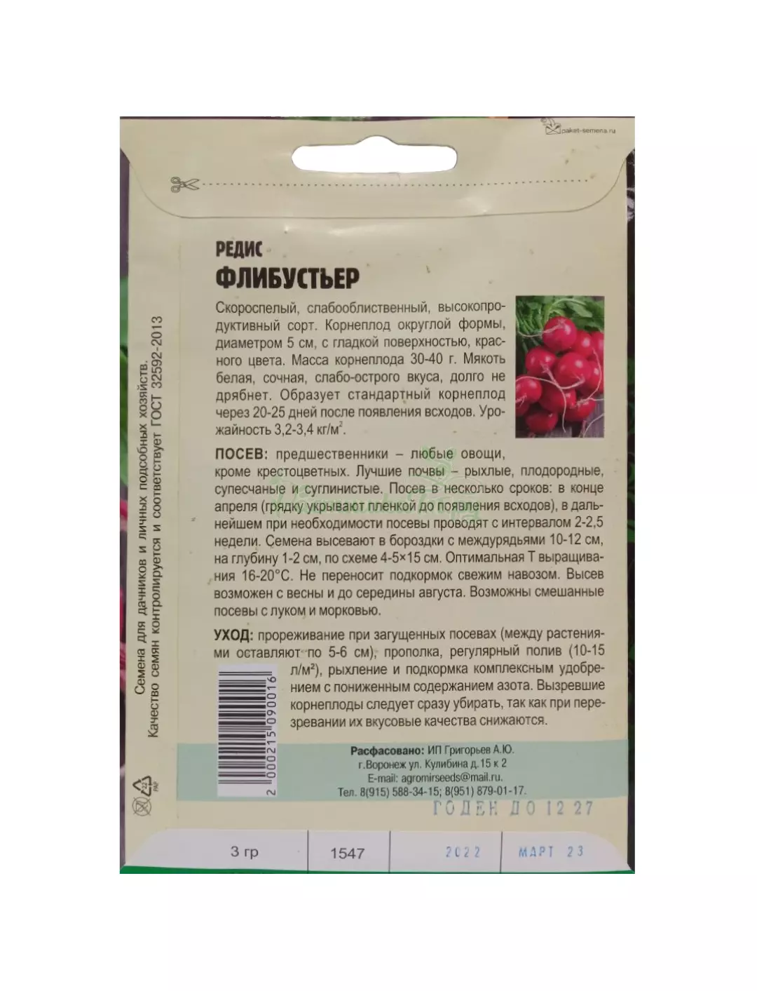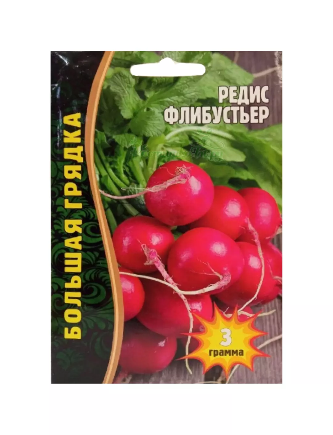 Скороспелый, слабооблиственный, высокопродуктивный сорт. Корнеплод округлой формы, диаметром 5 см, с гладкой поверхностью, красного цвета. Масса корнеплода 30-40 г. Мякоть белая, сочная, слабо-острого вкуса, долго не дрябнет. Образует стандартный корнеплод через 20-25 дней после появления всходов.