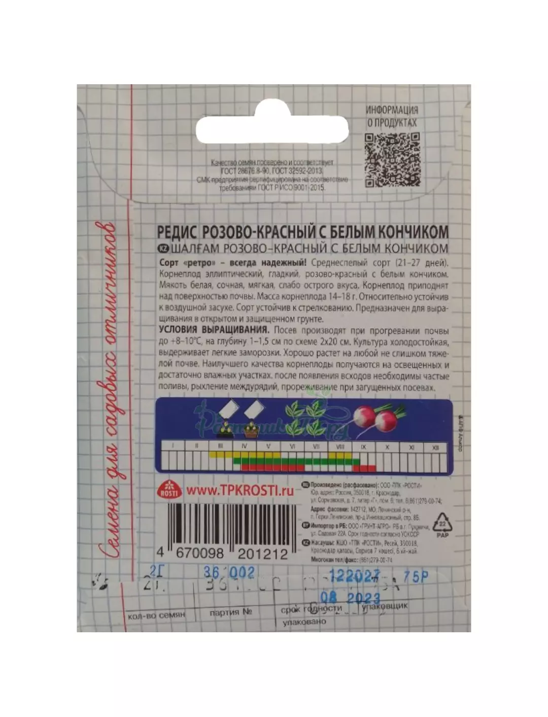 Редис Розово-красный с белым кончиком 2 г САДИСЬ 5!