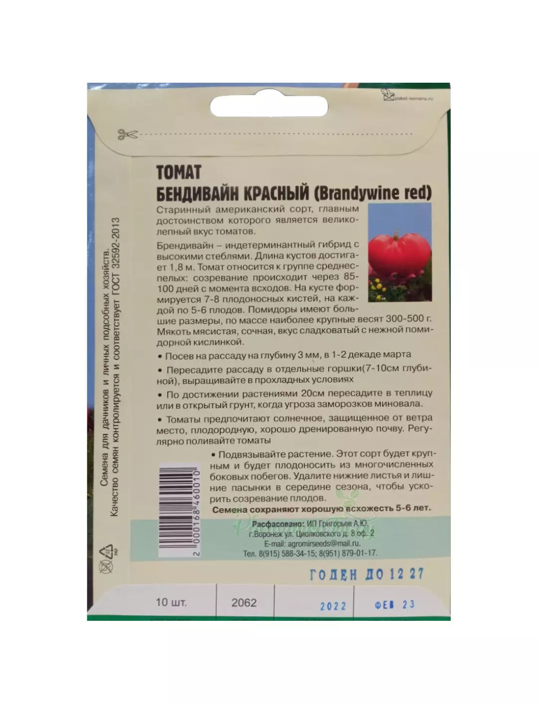 Старинный американский сорт, главным достоинством которого является великолепный вкус томатов. Брендивайн – индетерминантный гибрид с высокими стеблями. Длина кустов достигает 1,8 м. Томат относится к группе среднеспелых: созревание происходит через 85-100 дней с момента всходов. На кусте формируется 7-8 плодоносных кистей, на каждой по 5-6 плодов. Помидоры имеют большие размеры, по массе наиболее крупные весят 300-500 г. Мякоть мясистая, сочная, вкус сладковатый с нежной помидорной кислинкой. · Посев на рассаду на глубину 3 мм, в 1-2 декаде марта · Пересадите рассаду в отдельные горшки( 7-10 см глубиной), выращивайте в прохладных условиях · По достижении растениями 20 см пересадите в теплицу или в открытый грунт, когда угроза заморозков миновала. · Томаты предпочитают солнечное, защищенное от ветра место, плодородную, хорошо дренированную почву. Регулярно поливайте томаты · Подвязывайте растение. Этот сорт будет крупным и будет плодоносить из многочисленных боковых побегов. Удалите нижние листья и лишние пасынки в середине сезона, чтобы ускорить созревание плодов.