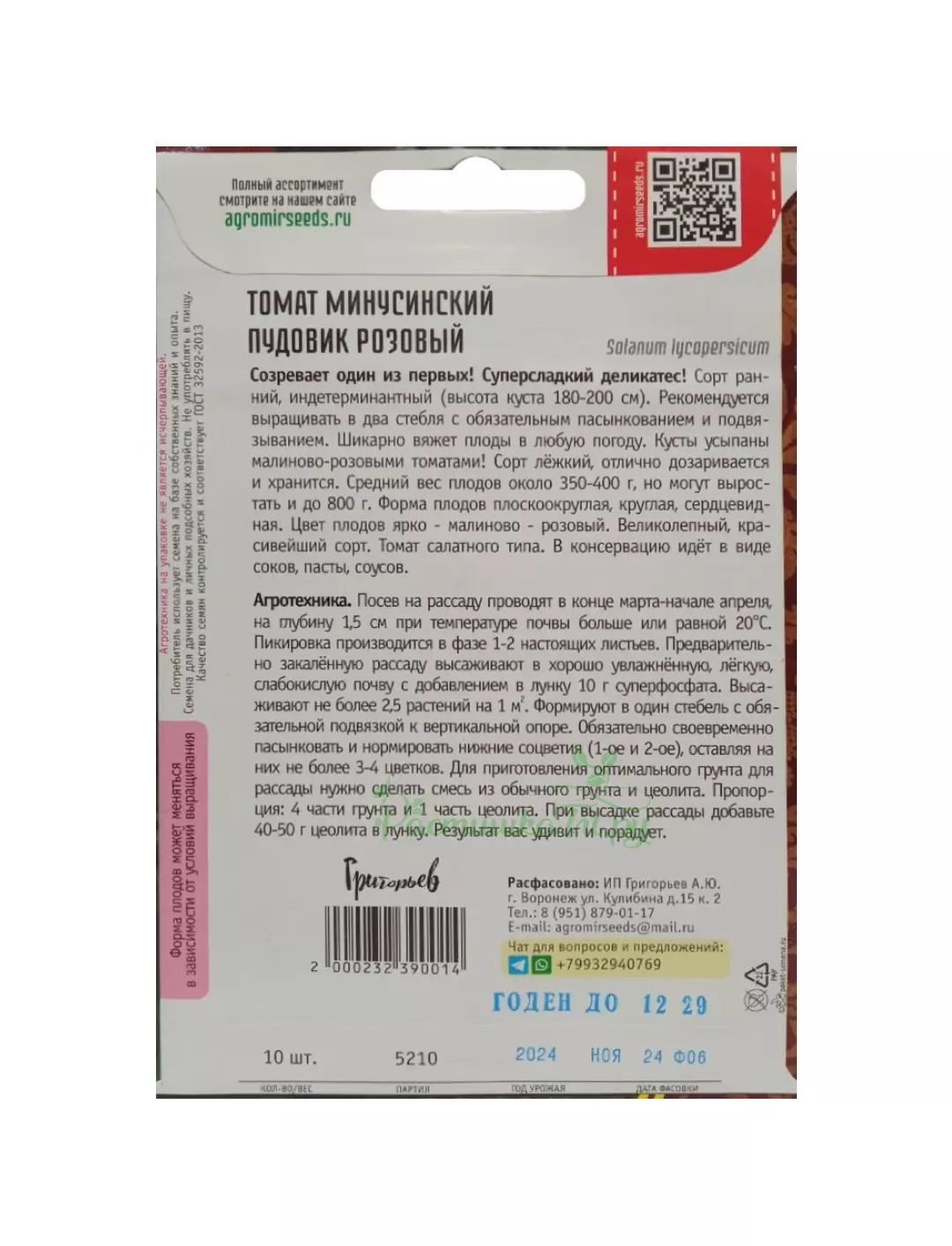 Томат Минусинский Пудовик Розовый также может быть описан как крупноплодный, с плодами весом около 350-400 грамм, достигающими до 800 грамм. Плоды имеют плоскоокруглую, круглую или сердцевидную форму, ярко-малиново-розового цвета, что делает его великолепным и красивейшим сортом. Томат предназначен для употребления в свежем виде, а также для приготовления соков, паст, соусов в консервированном виде. Сорт созревает одним из первых, является ранним и индетерминантным (высота куста составляет 180-200 сантиметров). Рекомендуется выращивание в два стебля, с обязательным проведением пасынкования и подвязывания. Растение отлично завязывает плоды при любых погодных условиях, украшая кусты малиново-розовыми помидорами. Сорт отличается лежкостью, прекрасно дозаривается и сохраняется