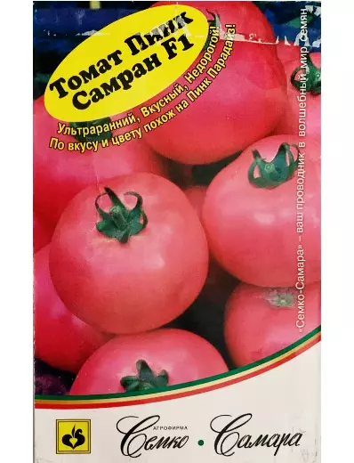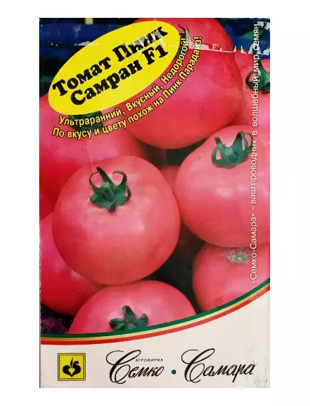 Индетерминантный розовоплодный, очень ранний томат. Кисть простая, с 4-6 плоскоокруглыми плодами, ярко-розового цвета, массой 180-220 грамм. Томат очень схож с Пинк Парадайз F1, но более стабильно завязывает плоды. Устойчив к TmVF205. Томат вкусный, яркой розовой окраски, устойчив к растрескиванию, вершинной гнили, относительно недорогой.