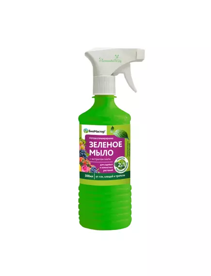БиоМастер Зеленое мыло с пихтовым экстрактом с распылителем 500 мл — это экологически безопасное, готовое к применению средство для комплексной защиты растений от вредителей и улучшения их общего состояния.