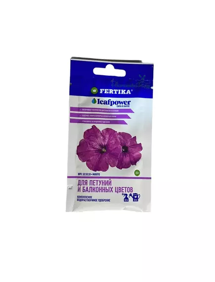 Представляем Fertika Leaf Power для петуний и балконных цветов – высокоэффективное листовое удобрение, разработанное специально для обеспечения роскошного и продолжительного цветения, а также здорового роста ваших любимых петуний, бегоний, лобелий, сурфиний и других балконных красавиц.