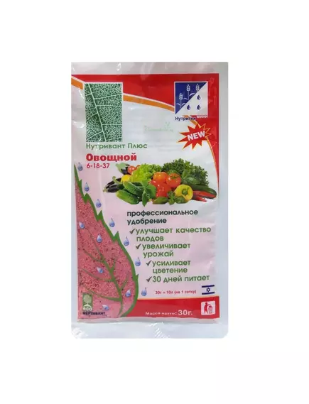 Нутривант Плюс Овощной - азотосодержащее фосфорно-калийное удобрение с микроэлементами и фертивантом для листовой подкормки овощных культур.