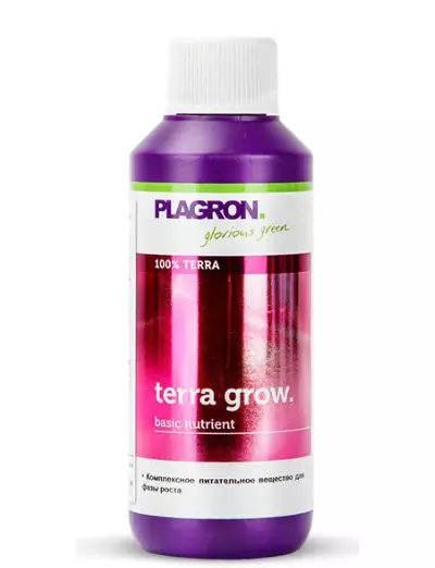 Plagron Terra Grow – высококонцентрированная базовая минеральная подкормка, которую нужно использовать на стадии роста растения. Жидкое удобрение обеспечивает растение всеми необходимыми питательными веществами, стимулируя рост корневой системы. Подходит для всех почвенных смесей, может использоваться совместно с любыми жидкими удобрениями и добавками Plagron. Преимущества Plagron Terra Grow Моментально впитывается, гарантирует оптимальный рост, подходит для всех систем полива. Объемы 1л, 5л Технические характеристики и советы Тщательно взболтать перед использованием Добавляйте не больше 5мл состава на 1л воды Используйте при каждом поливе на стадии роста В состав входят вода, нитрат калия, фосфат калия, нитрат аммония, фосфорная кислота, удобрение на основе азота, фосфора и калия (3-1-3) Следует ли мне следить за уровнем pH, когда я использую Terra Grow? В 90% случаев, нет, поскольку состав сам выравнивает кислотно-щелочной баланс. Но из-за того, что качество воды везде разное, убедитесь, что ваша вода в сочетании с составом дает значение pH между 6.0 и 6.5. Можно ли опрыскивать растения с помощью Plagron Terra Grow? Да, если вы хотите восполнить дефицит питательных веществ во время стадии роста максимально быстро. Допустим, если листья пожелтели, вы можете опрыскать их этим составом; для этого разведите 2мл на 1л воды.