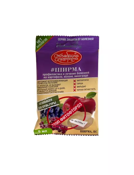 Средство для защиты садовых растений от болезней «Ширма» — фунгицидный препарат на основе флуазинама. Используется для приготовления водных растворов для обработки садовых культур.