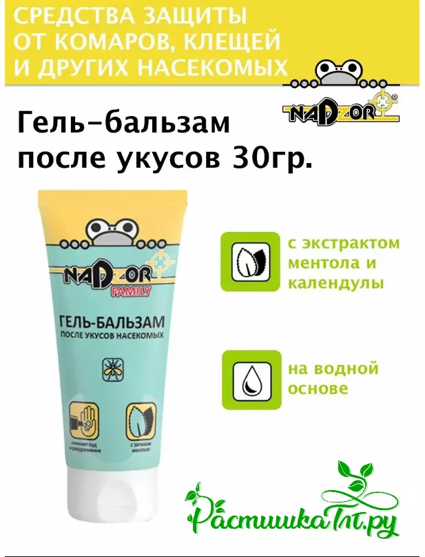 Одно из незаменимых средств на даче или на природе - гель после укусов насекомых. Средство моментально снимает зуд и раздражение, даже если укус сильный. Помимо последствий укусов насекомых, средство хорошо снимает болезненные ощущения при ожогах крапивой или укусе медузы