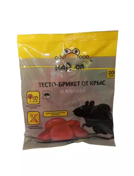 Приманка в форме тесто-брикета создана специально для борьбы с крысами, так как в своем обычном питании крысы, в отличие от мышей, предпочитают не столько зерно, сколько разнообразный корм растительного и даже животного происхождения.