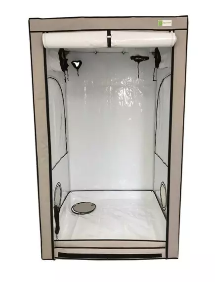 Гроутент FG 120 W (габариты: 120x120x200 см)- это закрытая оранжерея для дома, которая позволяет выращивать растения в закрытом грунте методом гидропоники, земли и кокосовом волокне. Внутреннее покрытие - белое