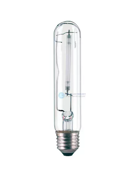 Основная информация: Натриевой газоразрядной лампой (ДНаТ) называют электрический источник света, светящееся тело которого является газовым разрядом в парах натрия. Поэтому лампы дают яркий оранжево-жёлтый свет.Эта специфическая особенность ДНаТ (монохроматичность излучения) вызывает при освещении ими плохое качество цветопередачи.ДНаТ применяются в основном для уличного освещения, утилитарного, архитектурного и декоративного. Для внутреннего освещения производственных площадей используется в случае если нет требований к высокому значению индекса цветопередачи источника света.В зависимости от величины парциального давления паров натрия лампы подразделяют на НЛ низкого давления (НЛНД) и высокого давления (НЛВД).Несмотря на свои недостатки, натриевые лампы являются одним из самых эффективных электрических источников света. Светоотдача натриевых ламп высокого давления достигает 150 люмен/Ватт, низкого давления — 200 люмен/Ватт. Срок службы натриевой лампы до 28500 часов.Допускается подключение только через пускорегулирующее устройство - ПРА.Характеристики:Мощность: 400 ВтЦветовая температура: 2000 КСветовой поток: 48000 ЛмЦоколь: E40Длина: 286 ммДиаметр: 47 ммСрок службы: 28000 ч