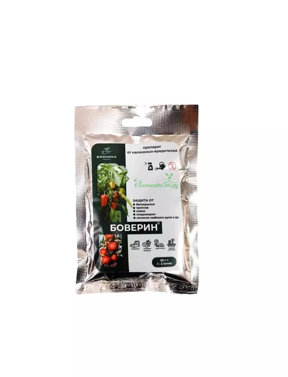 "Боверин" – это биологический инсектицид на основе энтомопатогенного гриба Beauveria bassiana, предназначенный для борьбы с широким спектром вредных насекомых на овощных, плодовых, ягодных, цветочных и декоративных культурах. Препарат абсолютно безопасен для человека, животных и полезных насекомых.