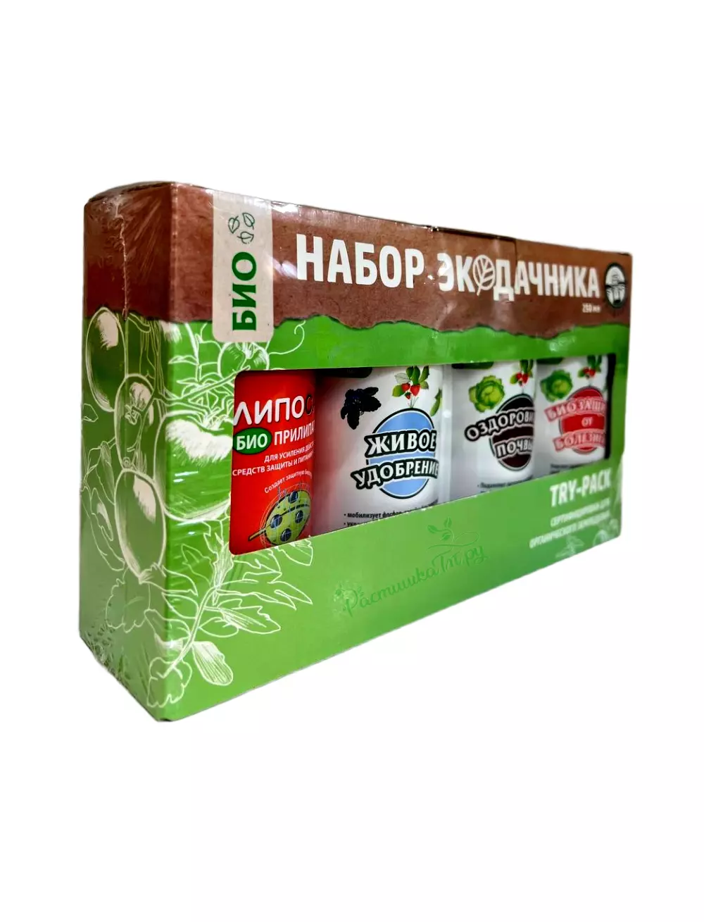 Набор Экодачника из 4 удобрений - это 4 биопрепарата для выращивания экологически чистых овощей и фруктов на своем участке. В него входят: Биозащита от болезней, Живое удобрение, Оздоровитель почвы и биоприлипатель Липосам, которые помогут Вам исключить применение химии в саду и на огороде. Препараты полностью безопасны для людей, домашних животных и окружающей среды. Продукция, выращенная с их помощью, считается экологически чистой. В составе Биокомплексов-БТУ входит специальный комплекс полезных бактерий для решения разных задач: биозащиты от грибных и бактериальных болезней (Биозащита от болезней), восстановление плодородия (Оздоровитель почвы) и сбалансированного питания (Живое удобрение), усиление и закрепление средств защиты на растениях(Липосам). Применять можно от обработки семян и до сбора экологически чистого урожая овощных и плодово-ягодных культур. Действовать согласно инструкции на этикетке.