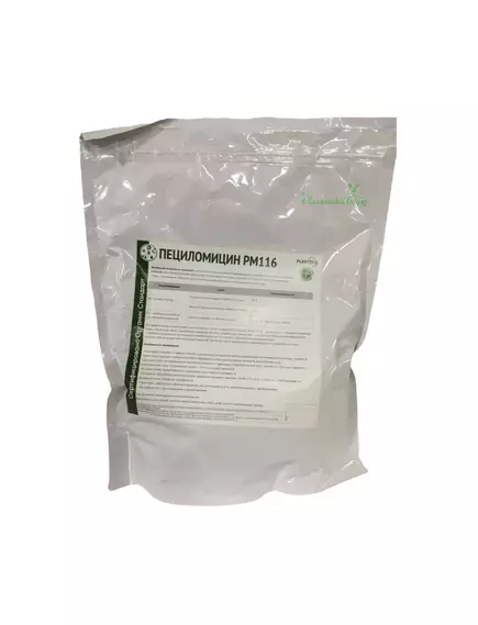 Пециломицин РМ116 0,2 Т активный почвенный комплекс энтомопатогенных грибов Paecilomyces fumosoroseum и Metarhzium anisopliae subsp. atis для профилактики заселения почвы вредителями.