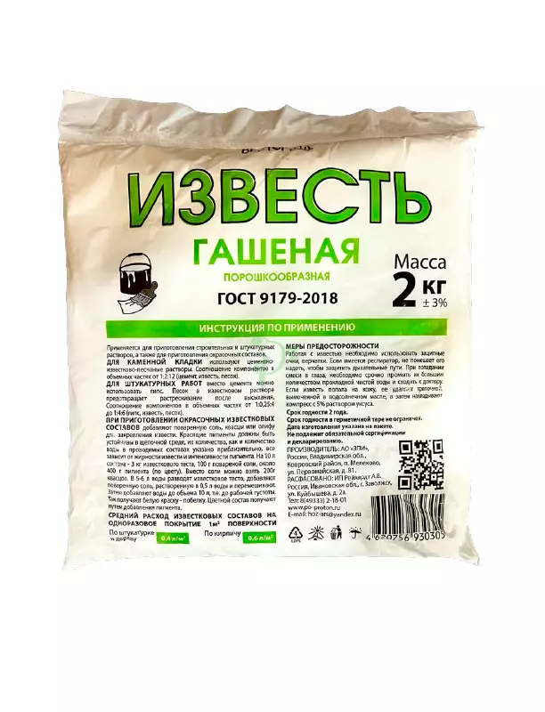 Известь гашеная (Гидроксид кальция) - представляет собой мелкокристаллический порошок белого цвета, с плохой растворимостью в воде.