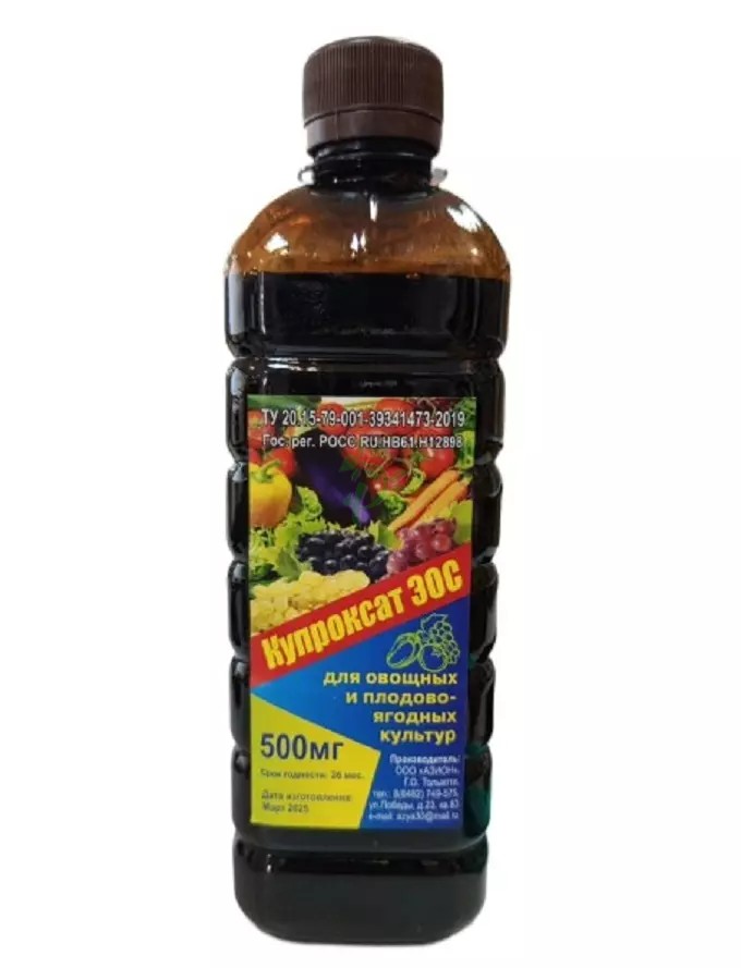 «Купроксат ЭОС» Медь – содержащий препарат используют в качестве профилактики, для борьбы против заболеваний: милдью виноградной лозы, парша, фитофтороз, пероноспороз, бурая пятнистость и макроспориоз, угловатая пятнистость и ризоктониоз, кластероспориоз, курчавость листьев, монилиоз. Назначение препарата «Купроксат ЭОС» при необходимости произвести профилактику распространения грибковых заболеваний на сельскохозяйственных растениях.