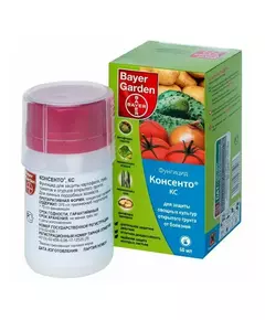 Консенто КС - системно-трансламинарный фунгицид. Преимущества: • Надежный и эффективный контроль фитофтороза, альтернариоза и пероноспороза. • Применение во все фазы вегетации растений. • Профилактика и защита молодого прироста, листьев и стеблей. • Защита нового урожая от фитофтороза...
