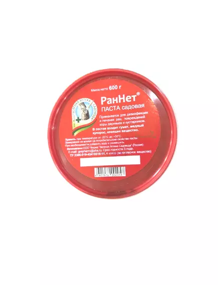 Готовое к применению биотехническое средство: В состав входит медный купорос, гумат, органический прилипатель. Для чего и где применять Паста-замазка для дезинфекции и заживления ран деревьев и кустарников морозобойных трещин и солнечных ожогов повреждений грызунами и болезнями при проведении обрезки Паста Раннет применяется для предотвращения соковыделения в местах среза ветвей деревьев и кустарников, дезинфекции и лечения ран и повреждений коры. Паста ускоряет зарастание ран, хорошо прилипает, образуя прочное покрытие!
