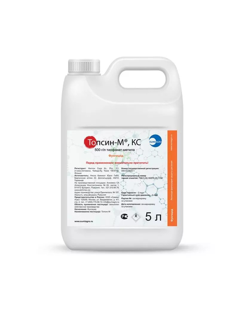 Топсин-М - жидкий фунгицид системного и контактного действия с некоторыми инсектицидными и даже низкими акарицидными свойствами. Эффективный препарат, направленный на лечение целого ряда заболеваний культурных растений.