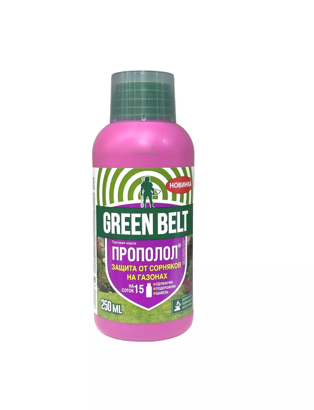GREEN BELT Прополол - средство избирательного действия для борьбы с сорной растительностью на газонах, вдоль заборов, дорожек, теплиц и построек. Гербицид уничтожает одуванчик, осот, конский щавель, лопух, подорожник и другие виды двудольных широколистных сорняков, безопасен для газонных трав и злаковых растений при соблюдении нормы применения. ПреимуществаПосле обработки отмирает не только надземная часть, но и корневая система сорняка. Действие препарата заметно уже через 2-3 часа после опрыскивания. Нежелательная растительность полностью погибает за 1-2 недели. Эффективная защита сохраняется в течение месяца.
