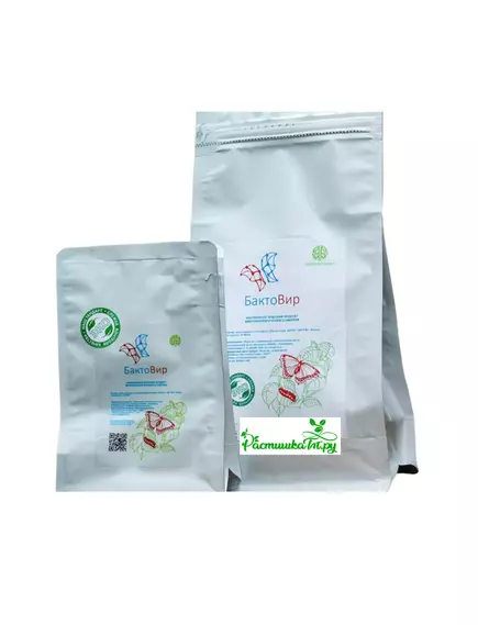 БактоВир — биологический препарат, состоящий из вируса и бактерии. Эффективно воздействует на гусениц чешуекрылых насекомых, личинок колорадского жука, белокрылок и тли. Биоразлагаем, не опасен для человека. Воздействует только на потенциальный объект.