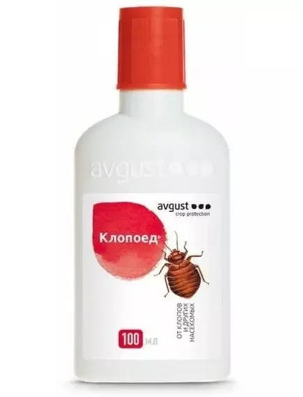 Клопоед — препарат для уничтожения постельных клопов, тараканов, домашних муравьев, блох, мух и личинок комаров. Постельные клопы — это одна из разновидностей насекомых-паразитов, которые обитают в местах пребывания людей или теплокровных животных и питаются их кровью. Появление в жилище таких паразитов является неприятным и опасным для здоровья всей семьи моментом. Клопоед поможет уничтожить полчище вредных насекомых, необходимо обработать раствором препарата места обитания вредителей: щели в стенах, полу и мебели, за плинтусами, подоконники, обратные стороны картин, ковров, места отхождения обоев. Эффект достигается через 2 суток после обработок, а гибель насекомых наступает уже через 2 часа. К тому же ваш дом будет защищен от нападок на срок не менее месяца. Клопоед не имеет сильного запаха и безопасен для теплокровных организмов (при рекомендуемых нормах расхода), но постельное белье им обрабатывать запрещается.